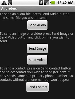 Download free android app Androbex and start sharing files through bluetooth connectivity. Sends files only to other phones and computers and not android phones.